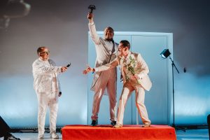 Spektaklio „Sugar“ aktorių duetui Raimondui Baranauskui ir Žanui Voronovui.