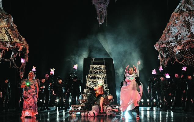 Kuriant atlikėjų išvaizdą, panaudotas pankiškos mados principas – šokiruoti fantastiniais kostiumais. Iš sintetinių medžia¬gų pasiūti, sulydyti, rūgštimi išėsdinti ir dažais išpurkšti personažų apdarai nė truputėlio nepriminė lietuviškai operos scenai įprastų pūstų suknelių ar iškrakmolintų marškinių.